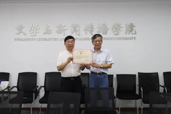 分中心主任杨玉华教授结合成大的发展历程、科学研究、平台建设等情况,介绍了文明互鉴与“一带一路”研究中心的基本情况,以及学术集刊《文明互鉴与文学研究》的办刊特色和发展规划,并向陶东风教授颁发了文明互鉴与“一带一路”研究中心、《文明互鉴与文学研究》集刊学术委员会委员聘书。