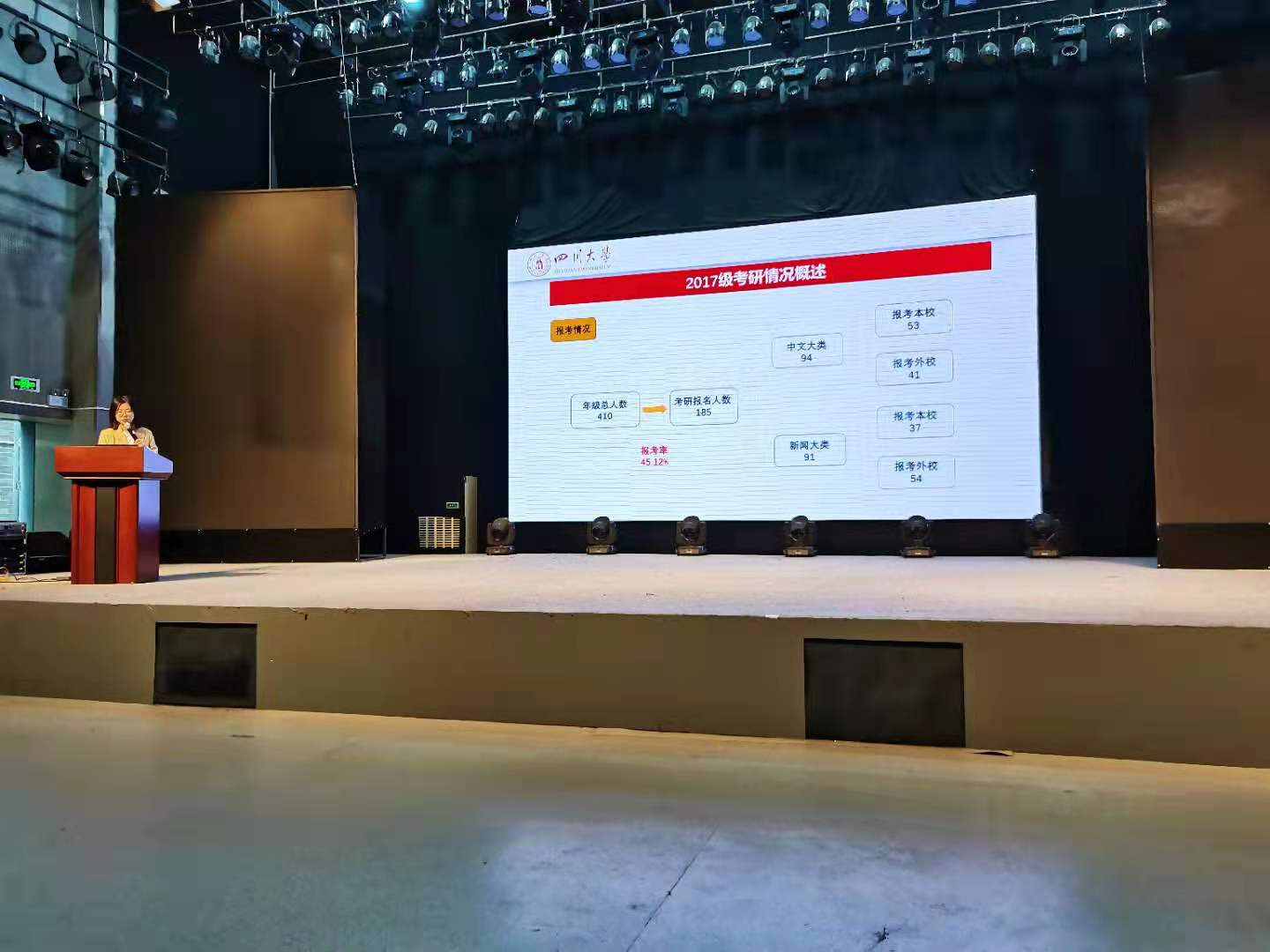 4月23日,澳门网投官网2021年本科考研经验分享会在文科楼一区演播厅举行。本次分享会邀请了澳门网投官网2017级本科生崔展鸿、张茗瑞、吉音、陈宋釜、姚斯璇、秦玉婕、杨一雄、贾胜美、李黎、冯熠、曹之欣同学进行了经验分享。他们分别被中国传媒大学、澳门网投官方网站、武汉大学、华南师范大学、复旦大学、中国政法大学、中国社会科学院大学、北京师范大学等学校录取。澳门网投官网党委副书记张莹老师参加了本次分享会。澳门网投官网本科2018级、2019级、2020级近200位同学前来学习。分享会由2018级本科生辅导员杨珊老师主持。