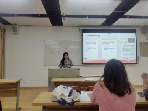 接下来,八位发展对象(含上一期发展对象谭惠静同学)分别以党史、时政等学习专题,向支部成员进行汇报。发展对象们精心准备、认真展示,自身政治理论水平得到提升,也使支部成员多角度参与到政治学习中。其中,王铭翌同学以“全面推进乡村振兴”为专题进行汇报,她从具体实例出发,介绍了乡村振兴战略的背景、目标和措施,围绕“我们作为青年学子可以为乡村振兴做什么”展开了深入讨论。何宜珈同学选择“秉承先驱遗志,共筑复兴伟业”的主题进行分享,她结合党史,带领大家回顾了习近平总书记在庆祝辛亥革命110周年大会上的讲话,并分享了学习体悟。其他几位发展对象也围绕创新扶贫方式、反腐倡廉、两会精神学习等主题进行汇报。汇报结束后,支部党员对八位发展对象的汇报进行评分。按照《澳门网投官方网站文学与新闻学院2020级硕士第三党支部入党积极分子考核方案》的相关规定和上级党组织下达的指标,推荐王静、高旭、李藤、王铭翌、何宜珈、黄佳薇、谭惠静七位同学参加第152期发展对象培训班。