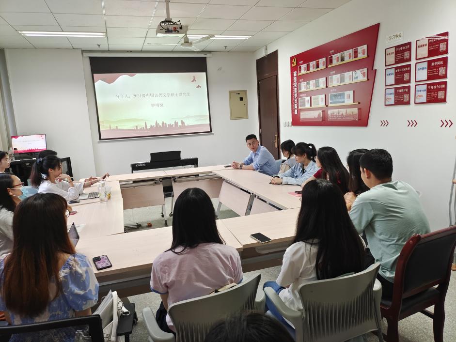 本次主题党日活动分三部分进行。活动伊始,中国古典文献学专业的党员代表尚莹轩同志以“文献视角下的中共一大纲领”为主题分享了党史知识。活动第二部分为中国古代文学专业的党员代表钟明悦同志分享“从革命诗词看党史:人间正道是沧桑”的内容。分享结束后,支部书记凌静同志就本学期各个专业党员同志的党史学习分享内容进行了回顾。