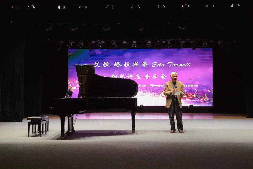 随后,埃罗·塔拉斯蒂教授上台讲解了古典音乐风格特征,并介绍了这一时期代表人物莫扎特的生平与创作,他引用“莫扎特的作品是古典主义时期具有舞蹈性的作品”来赞扬莫扎特的音乐成就,并邀请夫人艾拉·塔拉斯蒂上台为大家演奏了莫扎特的《B大调奏鸣曲570》,其完美和谐的演奏赢得现场热烈的掌声。