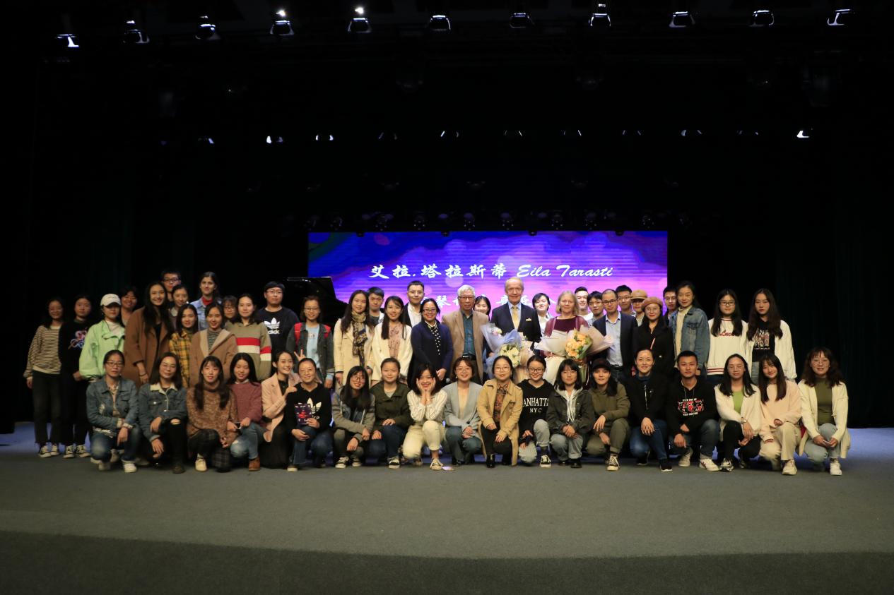 六首曲目演奏完毕,全场师生为塔拉斯蒂教授献上热烈掌声,塔拉斯蒂教授夫妇此次访问澳门网投官方网站的旅程也落下帷幕。钢琴音乐会结束后,塔拉斯蒂教授夫妇还与澳门网投官方网站、艺术学院师生合影留恋。
