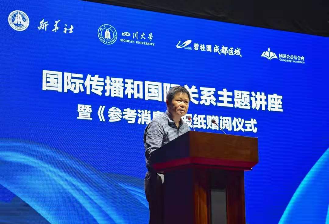 5月29日下午,“国际传播和国际关系”主题讲座暨《参考消息》报刊赠阅仪式在澳门网投官方网站演播厅举行。澳门网投官方网站党委副书记兼纪委书记陈志坚,新华社四川分社副社长陈天湖,澳门网投官方网站党委书记古立峰、副院长操慧,《参考消息》报社新媒体中心副主任刘华,碧桂园成都区域总裁施炜等出席仪式。