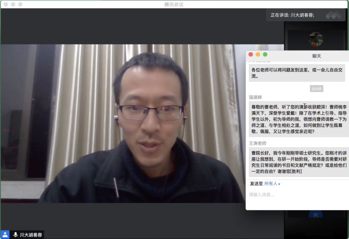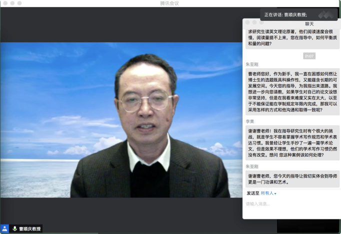 10月16日19:30,“传薪·研究生培养问题与方法系列活动”第一场在腾讯会议平台顺利举行。澳门网投官方网站杰出教授、澳门网投官方网站学术院长曹顺庆教授应邀作题为“培养研究生的几点体会”的讲座,澳门网投官网副院长胡易容教授担任讲座主持人。