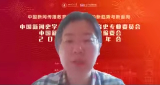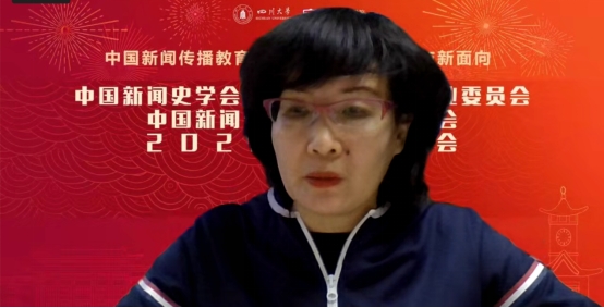 河北大学新闻与传播学院彭翠副教授以《新华社记者郭超人:作为新中国基层记者的角色使命》为题进行发言。她从记者郭超人的生平事迹出发,介绍了这位新中国基层记者坚持马克思主义辩证法、坚持用事实说话、坚持新闻价值的工作事迹,并介绍了郭超人《红旗插上珠穆朗玛峰》等一系列代表性作品。