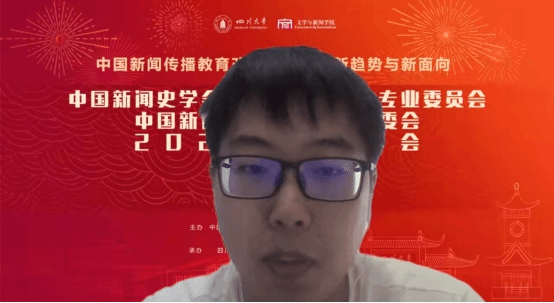 西南石油大学党委宣传部皮璟璇以《基体转换、横向整合与开放重造:新闻传播学科学术影响力提升研究》为题展开发言。他首先分析了当前新闻传播学科的“学科焦虑”,并提出采取概念重估、理论重组和范式重造的方式展开应对,并提出,国内新闻传播学科只有通过不断对中国新闻传播具体经验和历史展开认知,才有望上升到对人类新闻传播普遍道路的理解。