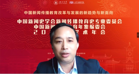 重庆大学新闻学院教授齐辉以《日本侵华殖民新闻教育探微—以日伪北京“中华新闻学院”为中心》为题进行了发言。他先后列举了“中华新闻学院”的创设与日伪的监管、“中华新闻学院”殖民教育的实施以及“中华新闻学院”殖民教育的终结相关的历史事实,最后提出,只有牢牢掌握住新闻教育的指导权和主动权,践行为国服务的使命担当,才能在复杂的国际舆论斗争当中立于不败之地。