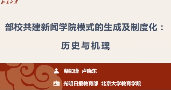 光明日报教育部主任编辑、北京大学博士生教育学院博士生柴如瑾以《“部校共建”新闻学院模式的生成及其制度化:历史与肌理》为题进行了发言。她首先阐释了建国以来我国部校共建新闻学院历经的四个不同阶段,分析了部校共建模式的生成机制以及制度化特征。她认为,在新时代,部校共建的模式已经沿着学校与学科的等级体系、省市区的行政体系呈现出推广、深化和扩散的特征。