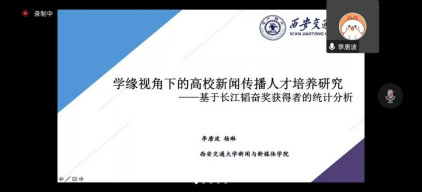 西安交通大学博士研究生李唐以《学缘视角下的高校新闻人才培养研究》为题发言。他收集并分析了2007年至2020年间共199位长江韬奋奖获得者的信息并进行了分析,提炼出开展新闻教育的建议:应明确新闻传播专业教育与成才培养间的密切关系、构建跨专业融合育人模式、拓展学生丰富而深厚的社会知识与体验、合理配置人才培养资源。