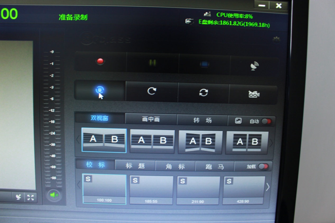 进入216左边的小教室,打开SoClass Recorder 软件。SoClass Recorder软件的控制按钮均位于屏幕右侧。